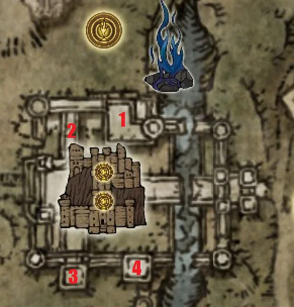 >>50266353 Там игра в целом построена так, что ты даже без замка можешь спокойно набирать. Замок это просто такое скопление мобов прям сочное. Если с рыцарями горнила, то еще и по опыту сочное. Но и без них жить можно. А у великанов есть определенный метод зачистки, как на картинке. Они смотрят в разные стороны, поэтому если через центральный вход не бежать, то можно их всех сразу не триггерить, а по одному расчистить. Бежите на фонтан, прыгаете на позицию 1. Второй вас не видит, но 4 сагрится. Но на башенке с великаном 1 есть виселицы здоровые, вот если встать так, чтобы они были прям по прямой линии к 4 великану, то все его горшки с той стороны замка будут просто о виселицу разбиваться, а вы в это время спокойно 1ого чистите. Потом идете ко второму, а 4 в это время о вас уже забывает. Ну и дальше быстро дочистите.
