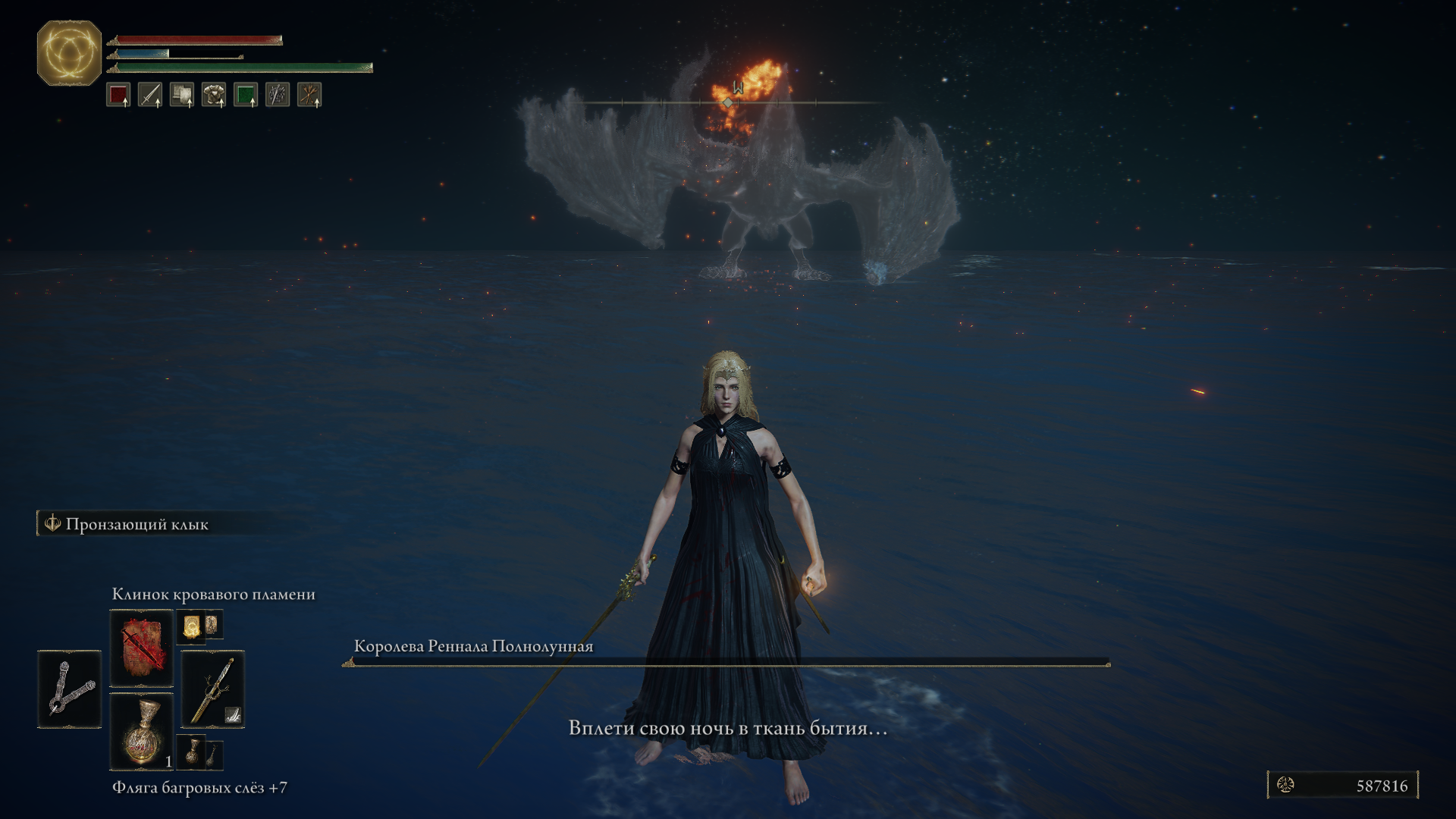 >>50355946 Луна Ранни - очень много урона и -40% к резистам врага на минуту. Лучшая открывашка для почти любого боя и наиэлегантнейшее решение, когда PCR взлетает со сферами. Луна Ренналы - бьет сильнее, но только -20% к резистам. Комета ночи - парные горгульи в Нокроне до тебя даже дойти не успеют. Карианский резак - лучший дпс во всей магии. Спиральный осколок - при правильной раскачке укладывают Пласидусакса и Элден Биста еще до того, как те закончат свою первую атаку. Метательный камень - за три применения сбивает баланс кристаллийцу, за четыре - дракону блестящих камней. Зачарованные земли - +25% к магическому урону, стакается со всем.