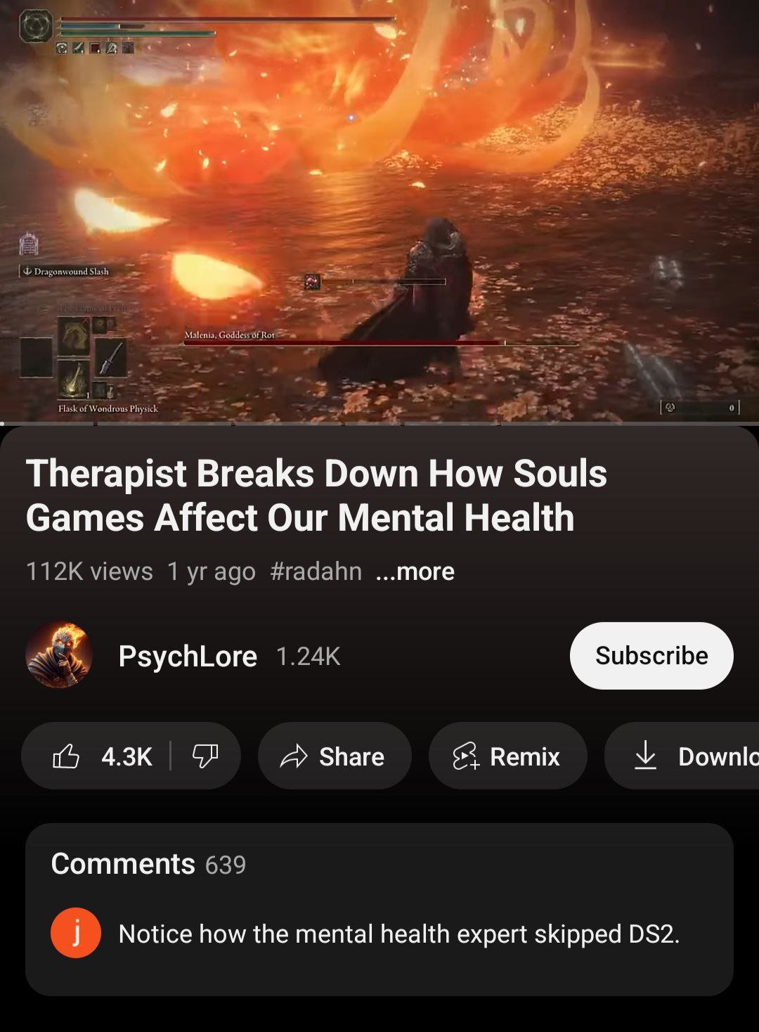 Алсо, к твоему предыдущему посту >Двушка же боится масштабов и ненавидит их Это совсем неправда, в двушке огромные открытые скайбоксы, в то время как первая игра ютиться в узкости стоящих друг дружку локаций, лишь в озере золы и в анор лондо видно масштаб.