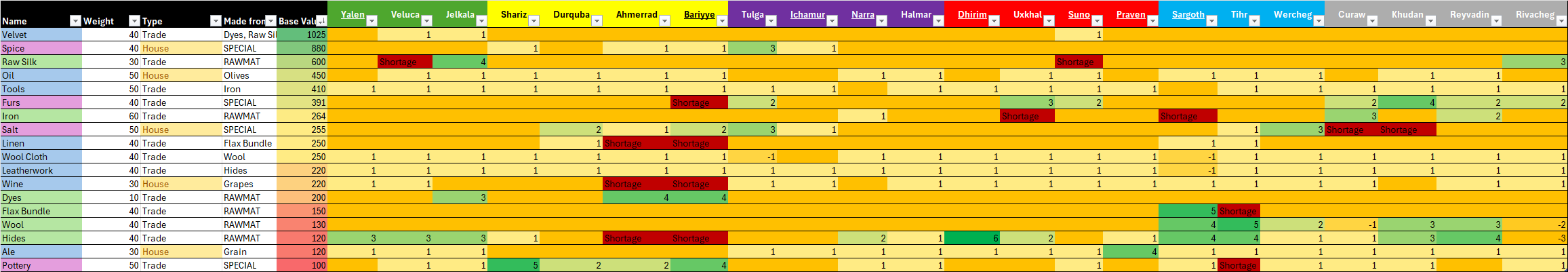 Да торговля РАБОТАЕТ В ПРИНЦИПЕ в викингах. То есть по этой таблице уже норм просто ходить между городами, деревнями и ориентироваться в закупочных ценах.