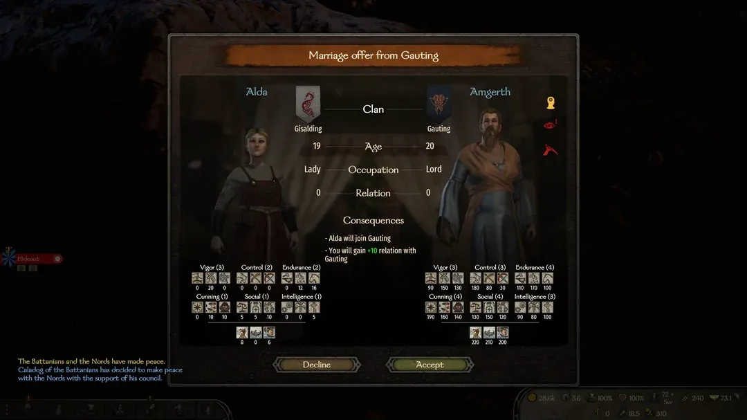 Что то фичи в патче прикрутили, но как всегда плохо. Залетел за южную империю, и застрял в войне в монголами и арабами, которые в альянсе. В связи с этим шанс выторговать перемирие - 0. Отожрал в маленькой победоносной 2 города и 2 замка асераям - они все равно не идут на мир. Никаких контрибуций я не видел с начала игры. За то ии сделал 999 iq мув и заключил альянс с западной империей за какие-то баснословные бабки - в итоге у меня это просто сожрало все накопления. Я так понял с нищих кланов все перекладывается на мои и королевские плечи.