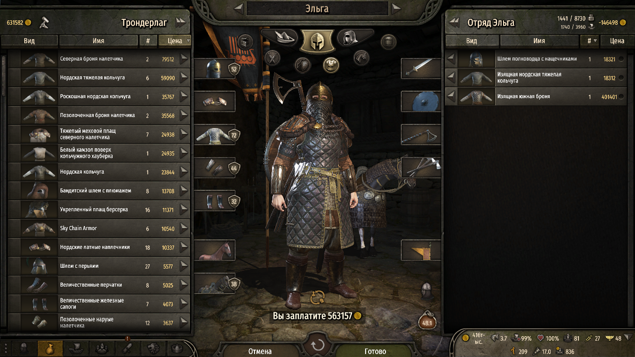 Короче пока так. Поборол соблазн в четвертый раз начать за баттанцев. I believe in Battania supremacy Начал нордом - охренеть у них имбовый т1 юнит, сразу со щитом. С какими ещё т1 челами можно выиграть 15 на 15 лесных бандитов лол. Долго смотрел на цены на корабли. Потом смотрел на низкое благополучие нордских городов и что ловить в этих землях практически нечего... Короче весьма каноничное событие с точки зрения истории когда да чувствуешь что вынужден покидать родные земли ради богатств и мечта - это драккар, да ладно какой там, просто самая дешёвая лодка для торговли спойлер - не для торговли Потом понял что у нордов нет конницы. Приуныл. Сам с коня слезать не стал, иногда только. Есть кста люди которые фулл через атлетику играют для максимального вайба? Хочется иногда, но я не выдержу пешком каждую битву пять минут до противника бежать... В общем отправился к хузаитам, купил там лошадей для скорости отряда. Кстати, в копилку идиотских моментов и разочарований - викинги рядом с монголами. Пиздец. Алсо лорды у нордов выглядят абсолютно также как у стургов. Такая халтура! Акшуааллии, по лору так и должно быть... Стал наемником, пошли пропускать стургов, весьма успешно. После стургов купил себе сразу две лодки по 15к. Потом объявили войну баттании и тут коса моя нашла на камень. Я был слишком самоуверен после победы 50 на 80 у стургов и проебал 50на60. Причем у врагов осталось два воина. Там в конце было что-то типо 4на5, 3на4, 2на3... Это были очень жёсткие эмоциональные качели... Что мне абсолютно не понравилось - так это то что нордская армия ходит пешком. И что никто не пришел на фан встречу - никто не пошел со мной воевать с баттанией. В прошлом прохождении к слову меня убили почти в начале и 60-70% игры я играл за Корейн мой первый плен был к грабителям спустя несколько минут от начала игры, так что чувствую себя хорошо, что попался в плен только один раз и к лорду... Это копиум, я не чувствую себя хорошо, я сожгу каждую их деревню. Насчёт убийства лордов пока в раздумьях...