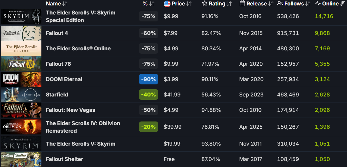1) БГ3 и медведи 2) НМС 3) Стар Ситизен 4) Трансфемки по квотам у Тодда на зарплате 5) Индусы на аутсорсе со скриптами из Обливиона 6) Нищие игроки с 2060 и торрентами (как вахтёр) 7) Игра прекрасна, люблю камни