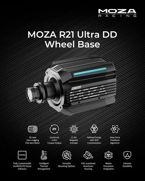 База - R12 V1. База как база. Оценка наверное 4. Это вторая моя двенашка, вопросов к ней минимум, как и к первой. Крутит быстро, не греется. Баранки у меня на ней были в основном лёгкие. Для пивных покатушек запаса по мощности там выше крыши, детализации хватает, скорости реакции тоже. На 100% мощности в АС при столкновениях заставляет трястись риг, несмотря на мою тушу в 90 кг. Главная претензия - как и любой другой базы Moza - прошивки говно. Сам по себе софт по управлению базой еще не плохо сделан, а вот прошивки они обожают выпускать из рук вон плохо. От новой прошивки на базу может прийти перегрев/осцилляции/потеря мощности/смещение центра оси на несколько градусов (которое не исправляется калибровкой, и это не шутки) и прочие веселые вещи. Поэтому если база работает корректно - не лезь её шить. Только за этот пункт снимаю полностью один балл.