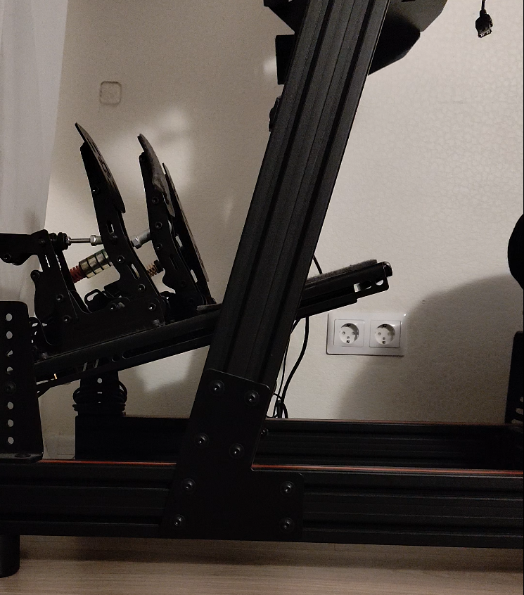 Педали - Simsonn (не Pro). Твердая 4. Хорошие жестяные педали для рига онли. За тот же период в 8 месяцев, показали себя прекрасно. Полный кастом в плане жёсткости нажатия. Настройки калибровки не слетают. Наводок на моем сетапе нет. В длинных сессиях (2+ часа) проблем не выявлено. Минусы/доёбки: 1) Не абсолютно бесшумные, жесятной звук пружин на газе есть и у меня и у друга, тихий, не мешает, но кого-то может раздражать. 2) На таком же комплекте у друга разболтались винты/гайки, он их периодически подтягивает. 3) Гидравлические цилиндры приходят в негодность за 3-4 месяца, у меня их нет, у друга сдохли быстро. 4) Несмотря на наличие большого числа эластомеров и пружин "из коробки" их всё равно не хватает. 5) Слабая пружина на газу, если планируешь катать овалы, пружину надо ставить либо со сцепления из этого же комплекта, либо покупать у алиен задротти. 6) Отсутствие резиновых накладок на педали не добавляет удобства.