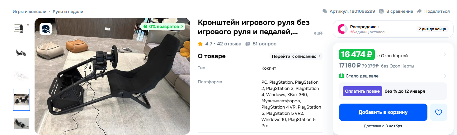 >>50262393 >Критикуешь - предлагай. 1. Первая баранка для "вката" человеку который знаком с быстродвижущимися машинками на экране только по клавиатуре/гойпаду, должна быть ДД (что уже написано, с этим согласен), а вот на педали там капитально насрать. Да, да именно так. Один хуй новичёчек ебаный будет на педали нажимать примерно как макака, поэтому все требования к начальным педалям - это их наличие. Новичёчек ебаный должен заглотить пиздатую наживку в виде спецэффектов от нового вида контроллера, от того как ДД пытается сломать ему руку. Нужен ВАУ-эффект, шоб руки тряслись. Он LC педалей ВАУ-эффекта не будет. В дальнейшем, при наличии интереса к своему скиллу педали меняются на SRP или P500, и едешь на них пока до рига/стойки не дойдёшь. 2. Предлагаю явно написать с какими базами/бандлами анон знаком лично, а с какими нет. Гайд в котором в алфавитном порядке перечисляются незнакомые новичку девайсы, 2/3 которых никто из треда не щупал - говно. Это же НАШ гайд, а не консультанта из ДНС. 3. Расположить их в порядке популярности/рекомендуемости. Для новичков тредис всегда был положительно настроен к мозе пятёрке - её первой описываем. Потом Джабич про PXN пукнула а еще и покрутила её вилчеком, его на второе место. И так далее. Чё там еще из бомж-вариантов есть у всех анонов я не упомню. 4. Моза 9 говно, потому что нет задач уж прошу прощения анонов с данной базой, она не сама по себе хуета, она хуета в мире где есть 5 и 12. Для новичёчков есть 5 с готовым креплением для стола из шелухи от семечек. Для базовых пивных покатушек любого класса гоночек mid-tier есть 12, которая уже держит баранку любого веса, и всё еще массирует простату стопроцентной отдачей на риг. 9 - хуета. К столу из коробки не прицепишь - надо докупать крепление. На столе из ДСП на 100% - скорее перевернёт стол вокруг оси, чем зарулит тебя в басстоп на воткинсе. К ригу её крепить просто незачем, потому что а) есть 12 на 3 тыщи дороже б) он тяжелых штурвалов на риге так же будет греться как сучья пятекрка на 100% мощности, и всё равно надо будет колхозить вентили, шоб она хотябы не вырубалась. Скидывал уже фотку как знакомый на ней гонял. Не могу найти. Кратко - ёбаный кипятильник после 3х часового заезда. Который остаётся кипятильником даже с обдувом двумя 120мм вентилями. 5. ОБЯЗАТЕЛЬНО включите в начальный сетап КРАЙНЕ СИЛЬНУЮ рекомендацию стойки под руль. Да, это не риг, но с ней можно жить, особенно хорошо можно жить, если найти те, которые еще и стул/кресло к себе фиксируют, по типу пикрила. У меня не было такой, я сразу риг хуячил но знаю человека который за такой стойкой 2 года сидел, пока до рига не собрался, он без неё как без рук был, тут может аноны у кого была подскажут за модель нормальную. Главное не гладильная доска из джокера.