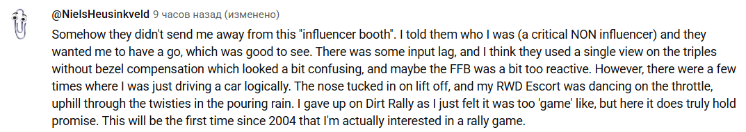 не говоря уже про всякую индюшатину как например ТХР которая оказалась неожиданно годной в которую засунули поддержку рулей. вы блядь просто вдумайтесь, разрабов настолько заебли что они добавили поддержку рулей в игру где даже нет вида с салона лол. и посмотрите на ее отзывы, JDM туда же. игра даже для инди аркадки просто на троечку из пяти. ровно такая же история но отзывы ахуенные банально из за пепонии. что там будет когда выйдет если выйдет NIGHT-RUNNERS которая собирается одним челом и даже графики не имеет но у одной пустой демки 95% положительных отзывов.