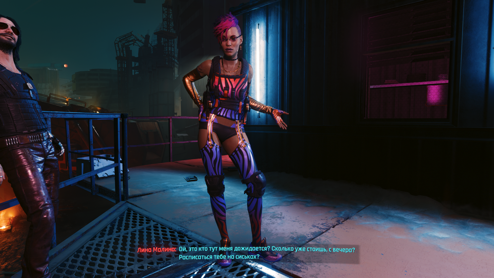 Чмойка бомжиха у которой нет нихуя. Она изначально подрядила Ви на спасение Майерс - Ви как толковый наемник дело сделал. Где обещанное? В киберпизде. Дальше Майерс дала работу. Ви как толковый наемник ее выполнил. Майерс сделала для Ви все что обещала.