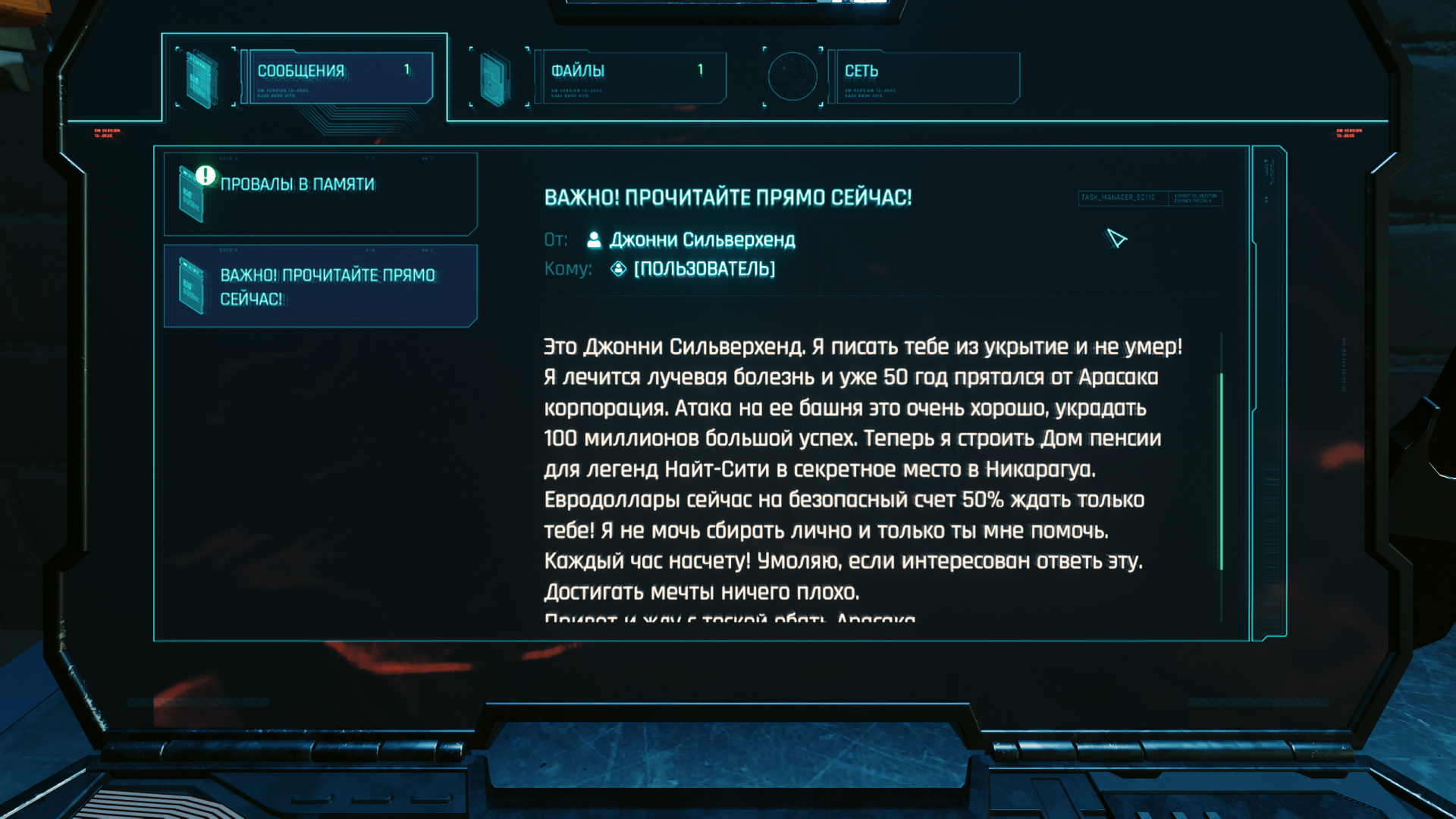 >Лол, интересно в чем? Майерс сравнительно легко втерлась в доверие к Ви. Однако сцена в космопорту показывает какая она расчетливая циничная тварь на самом деле и жизни её самых ценных подчинённых для неё ничто. Она руками Ви устраняет слишком самостоятельного Хансена и возвращает себе своё главное оружие, позволяющее ей и дальше удерживать власть, опять же руками Ви