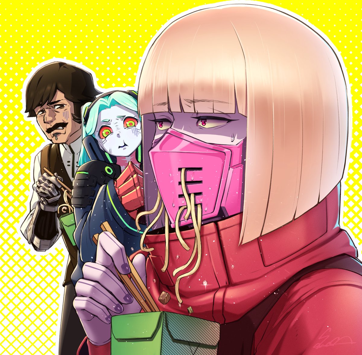 Киберпук в целом то штамп на штампе. И правила мира позволяют каждый из них искажать как хочется.