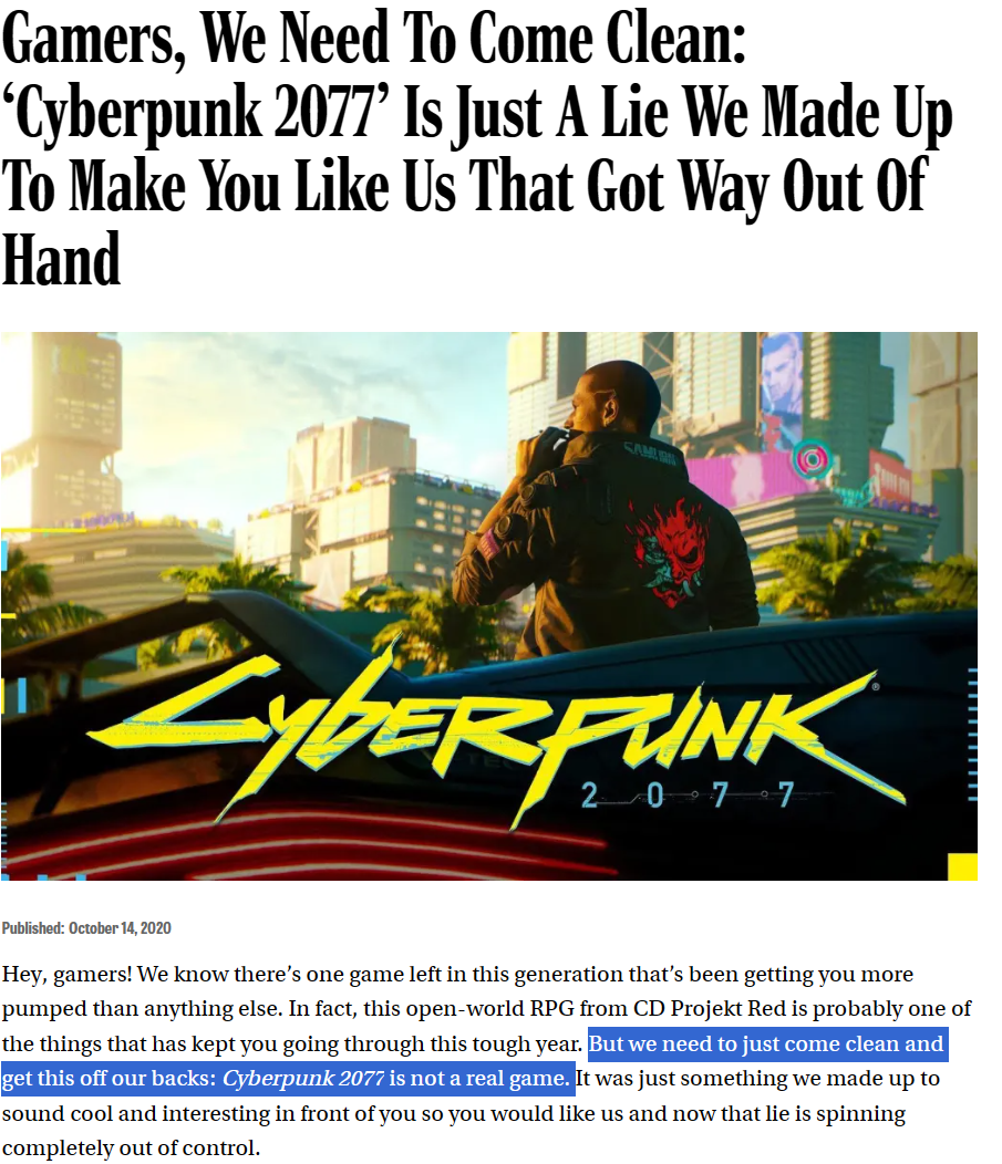 >>50300028 >>50300063 >>Cyberpunk 2077 не популярная среди дегенератов и олигофренов игра, потому что по ней нет YTP на GMOD/SFM. >Чуть уточнил, а то ты упустил важный момент. Нет фанатского творчества = игра не популярная. инб4 поделки маркетолухов по мотивам инб4 прон