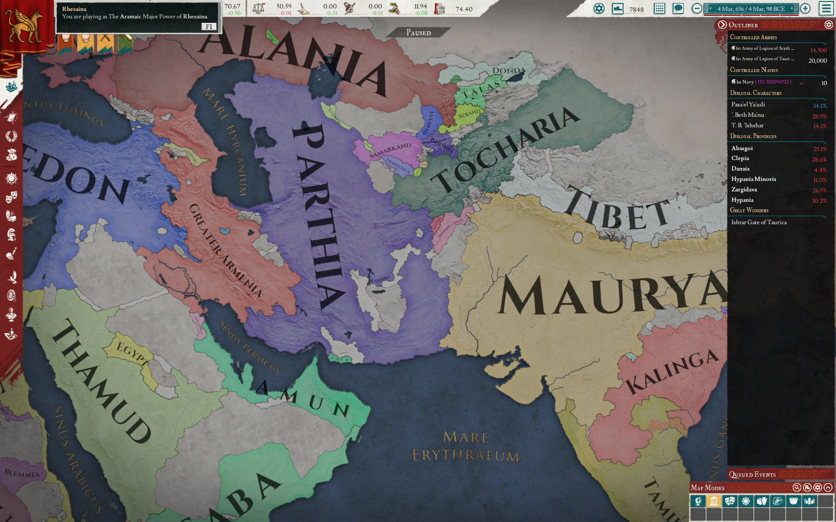 Вассалы вообще отдельная тема для разговора, стоилю правителю дипломату сдохнуть сразу 2 фракции по 10 рыл в каждой, и чтобы держать одобрение на высоком уровне я должен из управления переключиться на дипломатию, взять вдумчивость и потом назад на управление, тупо 10 лет ради одного перка. И то я сейчас это не могу сделать и мне приходится просто отдавать своих тянок для женитьбы чтобы они были в союзе, а у меня еще кроме обычных вассалов с 2-3к армиями еще и всякие огузы которые во внутренных войнах нафармили по 6к армий и это тоже ебаная кавалерия. Тяжело быть Сасанидом, тяжело...