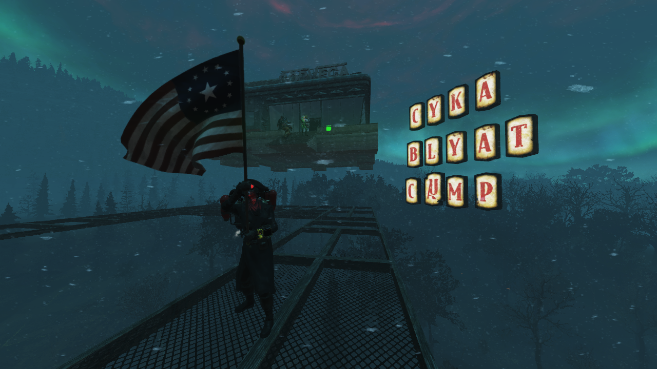 Вот там братство так братство! Это не те пососы что в первой, второй, третьей, вегасе или непонятные в 4ке. Вот тут они реальная сила, после захвата бункера Ноль, сломали бы лицо и НКР и тем более петухам в юбочках при случае.