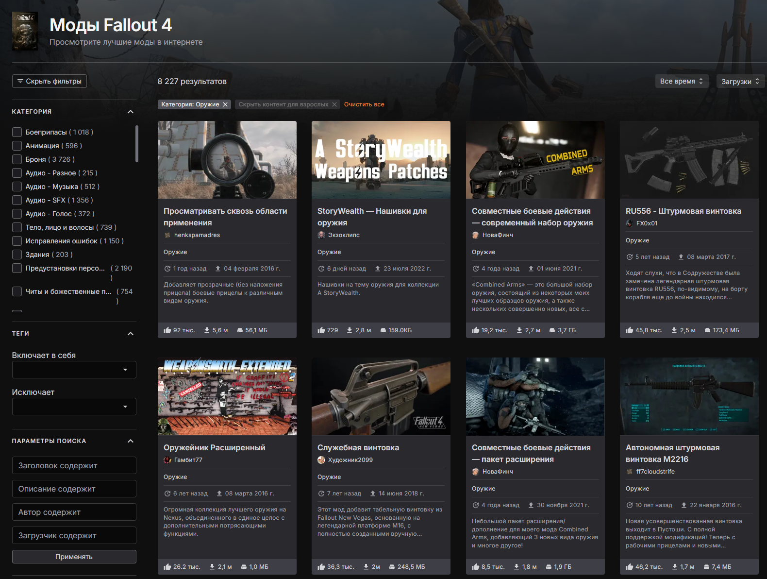>>50404988 Так ты в топе не смотри, да, листать долго, но находятся прям мастхевные, без которых чепырка не в радость. Смотри по афторам, как выше написали: The6thMessenger - этот вроде как с дегенеративной уткой вместе клепают. tumbajamba - там еще и броников насыпят не выбивающихся из лора чепырки. YonaTaku - один мод, но без него не играю. skibadaa - просто боженька. Painter2099 - много оружия из кекаса и прочей классики. wardaddy755 - MG42 намного лучше того кала, что есть в 7б Niero - старый, но не бесполезный (с) И обязательный - https://www.nexusmods.com/fallout4/mods/17847 Чуть не забыл, ITO! блеать, огромный пак энергооружия для каличей из института с их фонариками. (вроде там уже вторая версия вышла)