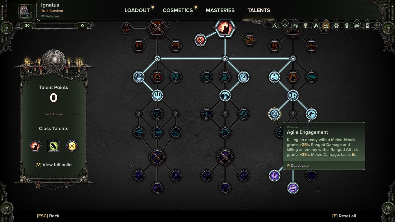 Очень агрессивный ключевой талант, который поощряет безостановочные драки! Попадания в ближнем бою дают стаки Адреналина, которые со временем теряются, если вы не атакуете. При максимальном количестве стаков вы теряете все стаки и получаете эффект «Адреналиновое Безумие», увеличивающий скорость атаки и урон в ближнем бою на несколько секунд.