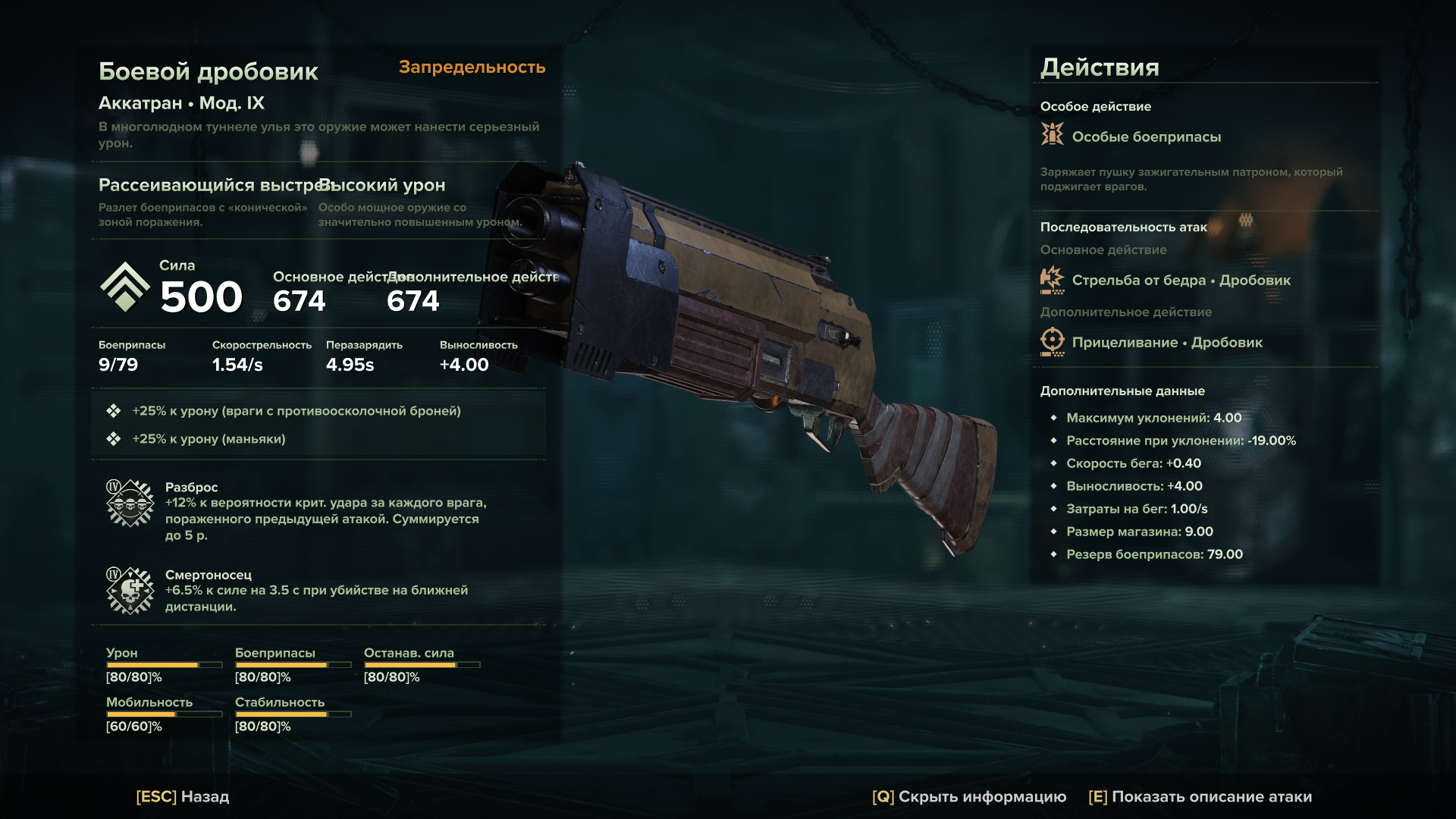 «Прямо в рожу» (In Your Face): Увеличенный урон дальнего боя на близкой дистанции, который дополнительно увеличивается на короткое время после перезарядки.