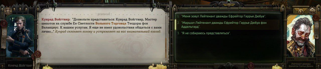 КАЖДОМУ ВАХАЕБУ, ВАХАФАНУ, ЗАЛЕТУХЕ И ЗНАТОКУ ЛОРА ЧИТАТЬ ВНИМАТЕЛЬНО: Совокоты известны крайней разношерстностью своих сюжетов — в одной игре может сочетаться как аниме/трансухи/соя так и самые базированные персонажи. А также известны своим вольным отношением к сеттингу: с Вахой это может вызвать горение жоп. Воспринимайте Rogue Trader как неканоничное произведение или фанфик. Хотите 100% следования "канону" — идите почитайте рулбук.