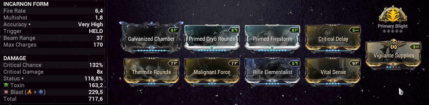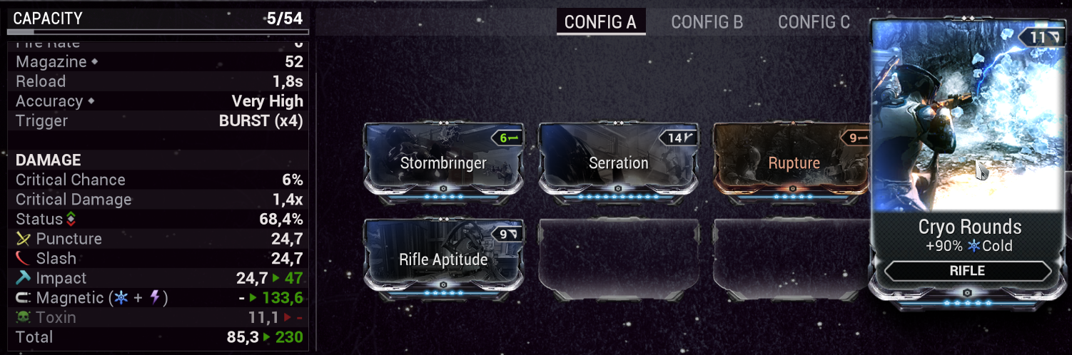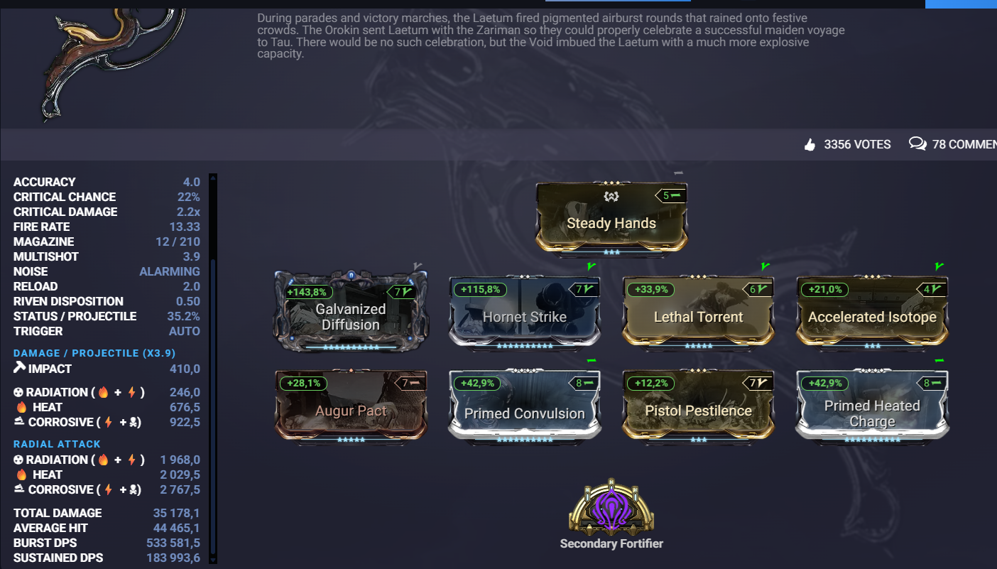 Будьте добры, подскажите как билдить не критовый лаетум? Ривень на минус шк есть. Побольше урона + вирус-огонь или огонь-коррозия (урона будет побольше из за двух прайм модов). Вижу, что в билдах часто нет гальваники на статусы и с мистиком не понятно.