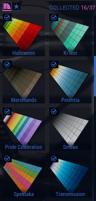>>50292579 >Не за платину же краску покупать. Пральна. За платину говно одно. Нахаляву выдают намного лучше палитры, которые включают в себя все цвета из платных + ещё оттенки. Их на самом деле ещё больше, там есть просто тупые расцветки, я не стал брать даже бесплатно, типа в виде флага пендосов - тупо один и тот же цвет повторяется ну и т.п.