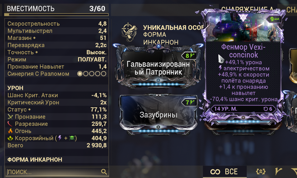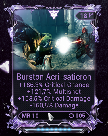>>50336112 Да с болтором я проебался, он хуже братана, не помню с чем я его перепутал. Лутай вепрь aka boar. У меня говнина с квеста по 6к бьет с 4 модами, кидай билд, заодно кидай какие у тебя моды есть. Против корпуса тыкай магнит (холод+электро) или просто электро. Я до 10 ранга (вроде) дошел с драгкуном (https://warframe.fandom.com/wiki/Drakgoon), забив его статусами, пронзанием и прочей ересью под завязку. Надеюсь, ты знаешь, что +шанс крита с модов расчитывается с базового. Если у твоего оружия 10% крита, то +100% даст в итоге 20% крита, что полная хуета, т.к. в игре есть обычный криты, оранжевые криты, красные криты, суперкрасные криты и т.д. Это не работает на некоторые арканы (мистики) и некоторые абилки, которые просто дают тебе плоские проценты крита (типа к 10% аркана добавит +45% сверху, итого 55%, но все остальное с модов все равно рассчитывается с базовых 10%, такие дела), но до них тебе еще очень далеко. Собственно, поэтому начальные пухи сосут - для них нужны сторонние баффы, которых у неофита нет. >>50336121 Это я для продажи роллю, для себя есть нормальный мр. Зашо мне в негативе -урон. Вот почему не зум / отдача / скорость перезарядки?