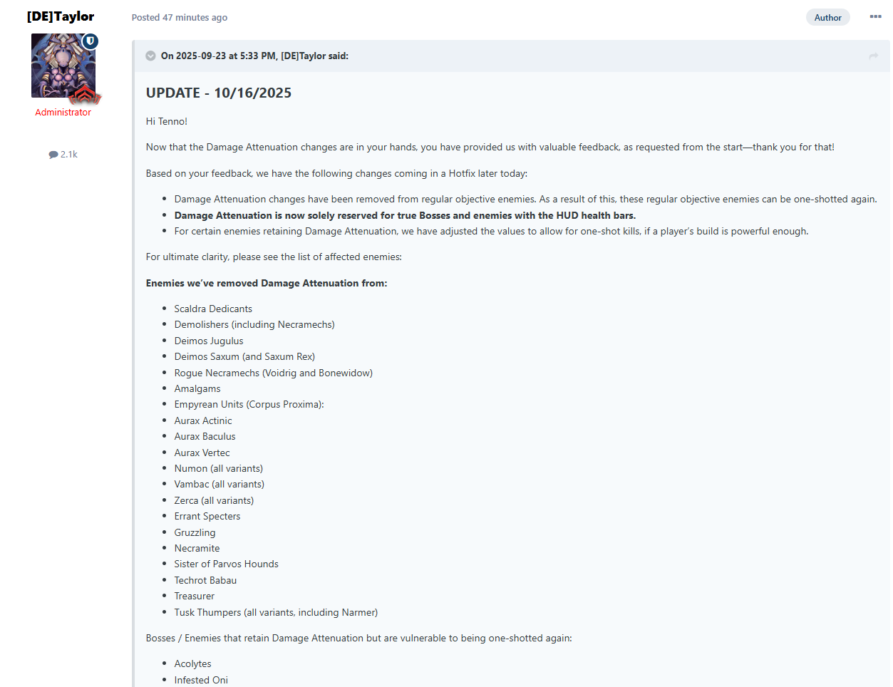 >>50334947 >>50334958 Они и так шотались все, кроме одного с аттюном, которого готовятся на пенсию в хольванию отправить видимо. Это если про классик дизрапшн. Вот деймосовский там да, пиздец, некракеки/бабаяги или как они зовутся, в общем Джоны Уики, шотаются как обычные мобы. Туда же и ЕТА/ЕДА с их ВЫЗОВИ НЕКРАКЕКА ЧТОБ УМЕНЬШИТЬ ОСТАВШЕЕСЯ ВРЕМЯ МИССИ - ну вызвал, шотнул недокачанное немета пухой на рандомной неформованной рамке, и чего? Должны пофиксить. Как и онкко сраного. Фикса мы будем ждать неделю-две-месяц. Лично я не против на самом деле, лул, всегда бесили эти говномобы, которым по 1к урона T3 критами фигачишь.