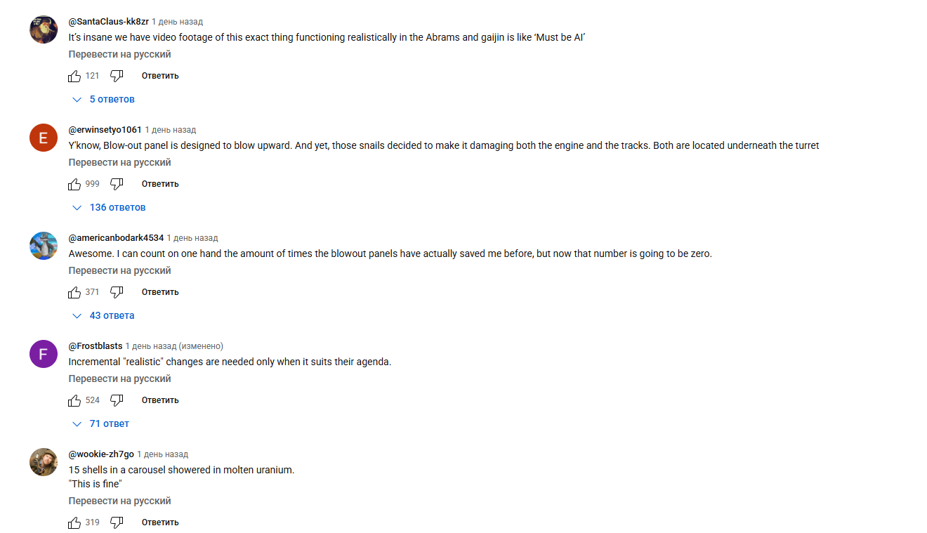 Ты вот скажи мне: а схуяли те панели вообще должны были спасать танк в обдристандере? Танк при их срабатывании может продолжать бой? Ни в коем случае. В некоторых случаях восстанавливали, но это все равно будет после того, как танк утащат на ремонт. Этих панелей в обосрандере вообще не должно было быть, тому как они делают то, что улитка делает с самого начала: спасают экипаж от гибели. Ни один человек в обдриствндере не погибает - только теряют сознание.