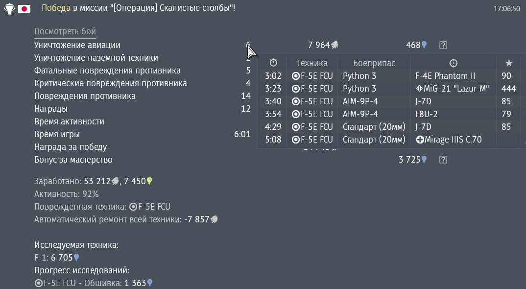 Берешь топлива на 21 минуту. Летишь по прямой на форсаже с плавным подъемом, раш по центру. В СНП/TWS выбираешь летящие навстречу цели, особенно приоритеты отдавать любителям кидать амнямнямы с Ф15. Твои главные цели: F15, Тайфуны на высоте и Сушки. После отметки 30 километров начинаешь кидать амнямнямы. Хорошо, если сможешь подпустить кого-нибудь на 25 километров. Бросил 2-3 амнямняма в зависимости от выгодности целей. При удачном выборе целей можешь получить 1-3 фрага на старте. Поворачиваешь под углом 90 градусов, на скорости 1700 километров в час ехидно уходишь от всех вражеских ракет. Через какое-то время поворачиваешь назад, в этот момент там замес и все там страдают друг от друга. К этому моменту можно играть более выборочно и оборонительно, выбирая цели на расстоянии плюс-минус 15 километров. При таком подходе Тайфун такой же эффективный, как рафаэлка, на которой ещё нужно подлетать вплотную по низам.