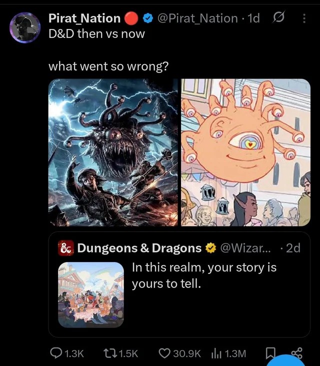 >>50412477 В ДнД на низких уровнях милишники сильнее магов, но на высоких наоборот маги сильнее милишников. Проблема в том, что в игре кап всего 12 уровней из 20, поэтому игра заканчивается до того, как маги начинают гнуть вселенную. Но есть хоумбрю заклинание 9 уровня с 30d6+120 урона, можешь примерно почувствовать разницу. Алсо, волшебник так-то не дамагер. Это мастер на все руки, у которого для любой ситуации найдётся подходящее заклинание. Дамагер это, скорее, чародей с его двойным кастом. А Минска сделали следопытом по традиции. Его создали в Dark Sun, где не было такого класса как варвар, поэтому его создатель сделал его следопытом и дал ему абилку ярость как у варвара. В те далёкие времена следопыт был сабклассом воина, а не отдельным классом, что-то вроде воина в лёгкой броне с выживачем. В современных реалиях Минск это скорее чистый варвар или следопыт/варвар.