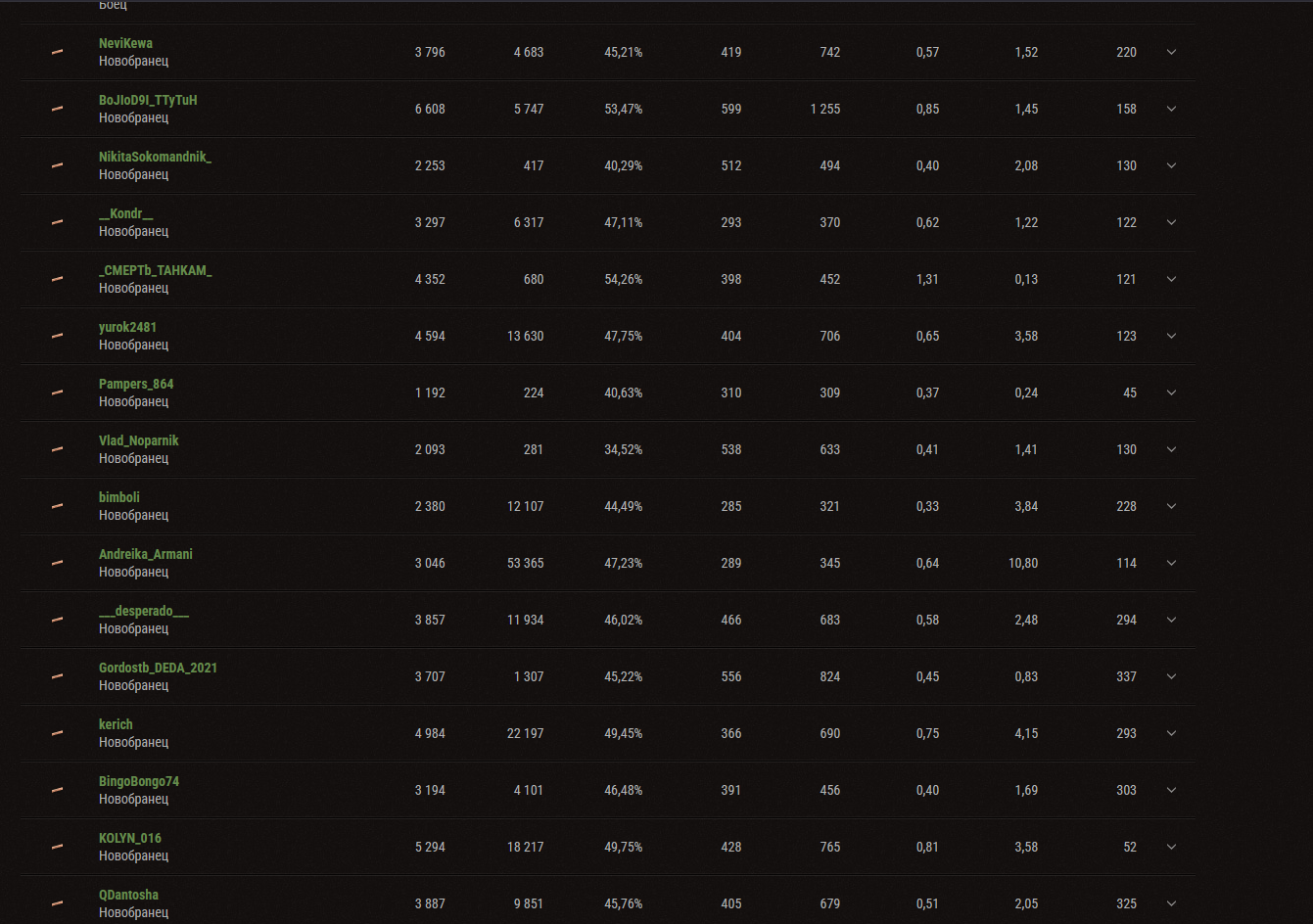 Хех, блядь, с утра 1 боя не хватило на чемпика. После этого даже смешно рассказывать, ну почти все катки - это сброд, может 1-2 танка играют, остальные шапито устраивают. Впятером едут на ст на фланг и об 2 танка и пт разбиваются в ноль. И т.д. Реально, впечатление такое что была нажата кнопка "этому не давать".