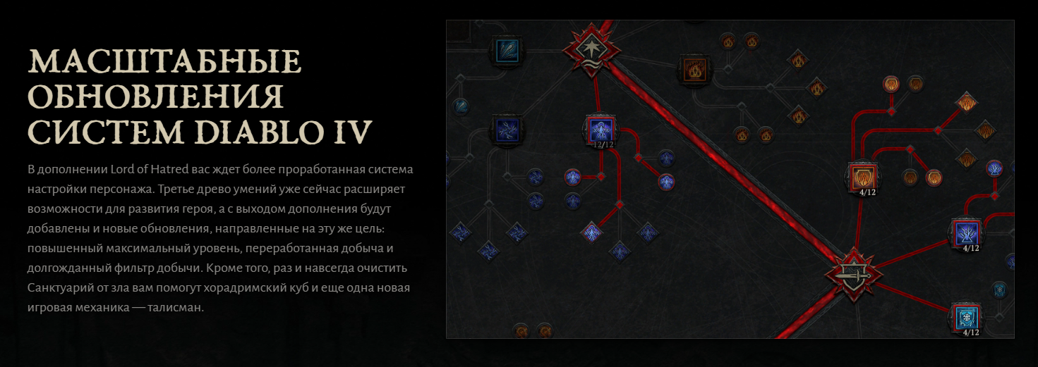 DLC «Сосуд ненависти» вышло 1. Парагон 300лвл распространяется на всех персонажей внутри сезона/вечного мира. Не нужно душно апать до 100лвл каждого персонажа как раньше. 2. Возможность покататься на ягуаре, пантере, льве. 3. Руны 4. Поиск группы(матчмейкинг) в клиенте. Теперь дискорд не нужен. 5. Наемники. 6. 8 сложностей(4 для ранней игры и 4 для эндгейма) выше сложность - больше наград. 7. Новый регион Наханту. Подземелье кураста. Темная цитадель.
