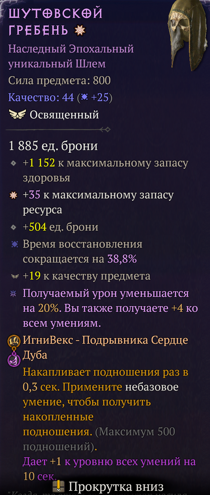 >>50331621 С Белиала гораздо выше шанс на фиолетовую шмотку и мульти га вещи. Просто усиленный дроп любого убера, но с белиала. Просто выбираешь босса и всё. Да, ищешь людей в групу, чтобы вся арена умирала по кд, эффективнее фарм идёт. С орд больше всего хаос вещей, в среднем 1 вещь в 6 мин, если падает дабл дроп. Эпохалка мифик, да. Смотря какой уник конкретно. Есть те, где все га нужны, но это редкость. В основном, самое главное это аспект максимального ролла, ну свойство процентное внизу. Но я не эксперт по твоему классу. Deilfix наш русский друид, топ1 друль, ты можешь на стриме поспрашивать, либо гайды посмотреть. Ва великий аспект думаю он ввиду име, т.е. га. Есть подношение кураста на повышенный дроп вещей с великим аффиксом, да. Оттуда можно амулет пытаться фармить, но каждый раз 50м это такое себе тоже. Я в 8 сезоне весь шмот точил трипл мастерворк, у меня ушло очень много ресов, приходилось фармить. 1 млн маревита точно уебал. Но маревит вообще изи по сравнению с душами и кристаллами. Кошмарки хз, их обычно фармят ради валюты, чтобы потом покупать за репу гарантированный мифик камень для крафта фиол вещи на новом персе. Ну самое эффективное получение амулета - это трейд. Я выбил 4га фокус на сорке 298/300%, продал за 7б. Самый дешёый 2га амулет от 20б кажется был тогда. Вот так дрочишь и покупаешь.