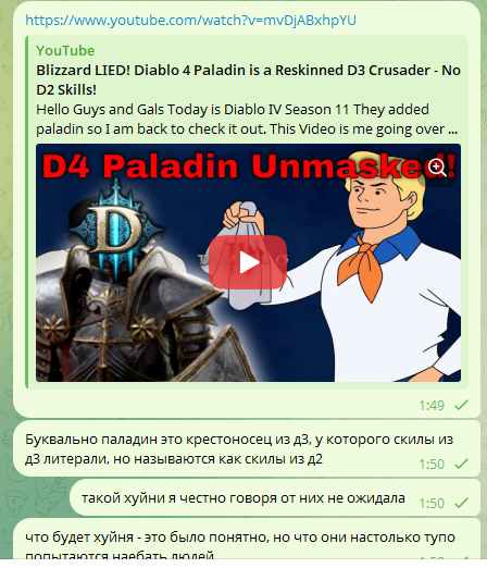 Сижу я значит, ищу, во что поиграть, и вспоминаю, что вроде как в диабле должен новый сезон выйти. Как же я охуел, когда увидел трейлер нового дополнения и паладина. Как будто спал 100 лет. Прошлый сезон инста дропнул, я ебал фармить эти орды нахуй. Что-то новое в этом сезоне есть, кроме паладина? Чисто ради него впадлу игру скачивать. Если там опять это дрочиловка с маверитом, то нахуй оно надо вообще.