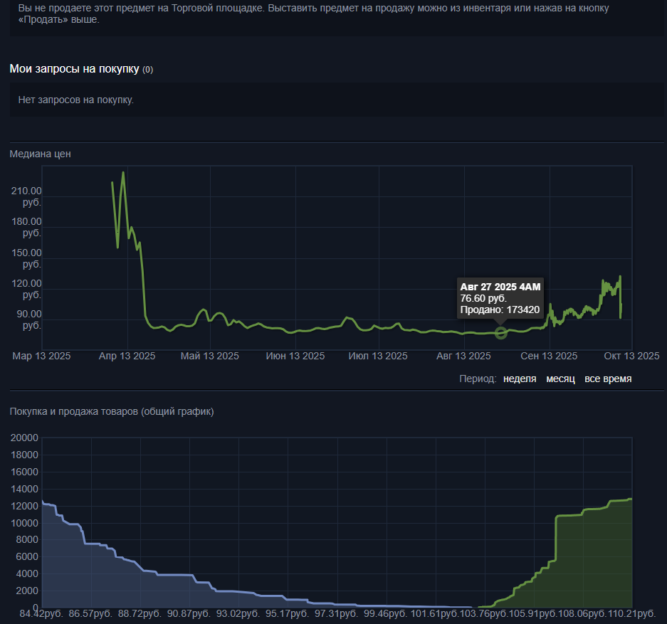 неплохо вышло, я думал щас продам, а цены еще вырастут по итогу всё че я 3 часа назад слил, уже на 500-1000 упало, и это мне видно только чистые деньги, которые придут, а так там еще комса 15% стима для покупавшего была крч заебемба, говно слито, можно и нищенож взять или вывести потом, или игрульки дебилки купить