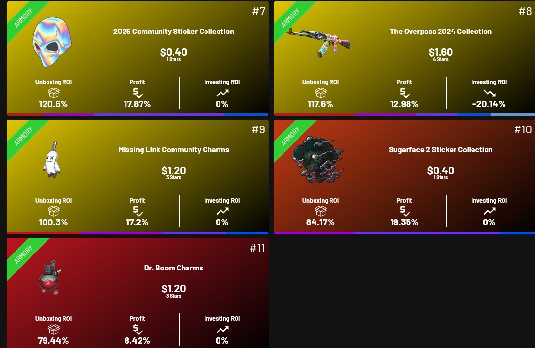 Чем тариться лучше с этим тухлым армори? Кейсы уже по 88 рублей, еле еле профита дают. По сайту выгоднее наклейки тарить, но сегодня куплю как и все, а через неделю сразу после анлока они будут стоить копьё. Я в замешательстве.