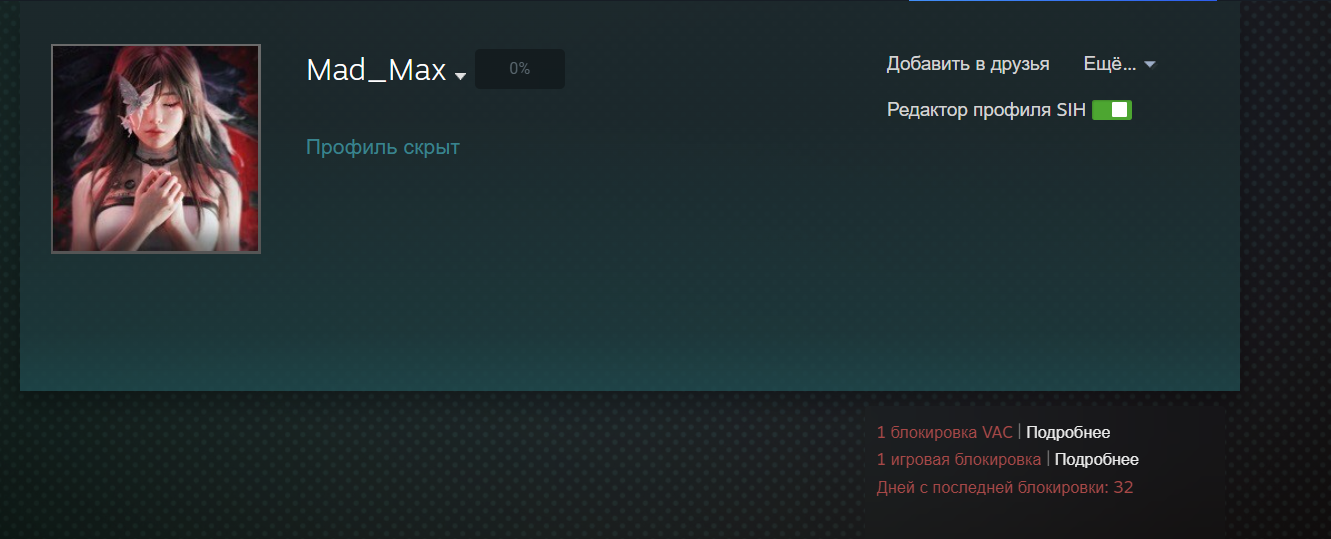 >>50341219 Если ты не знал спустя более 2000 дней вак бан и вообще любая блокировка перестаёт отображатся для других людей в твоём профиле, но всё ещё остаётся для твоего аккаунта.