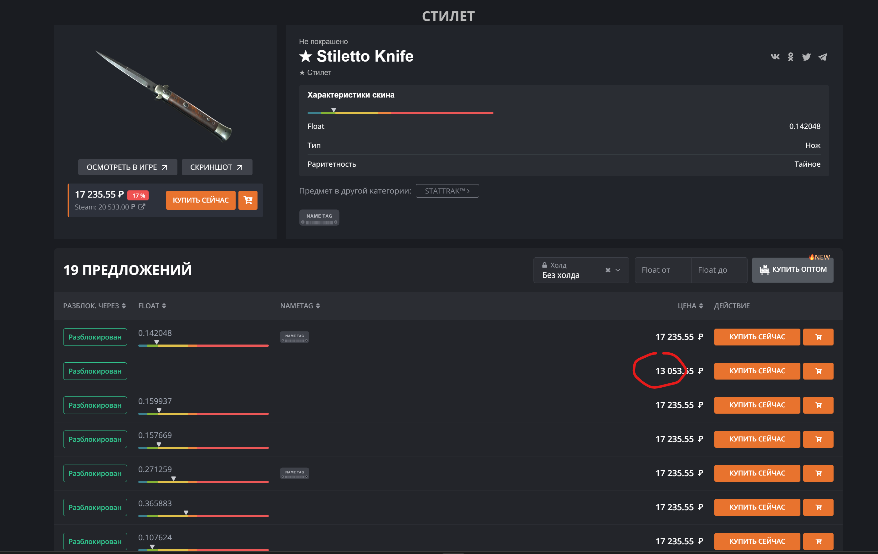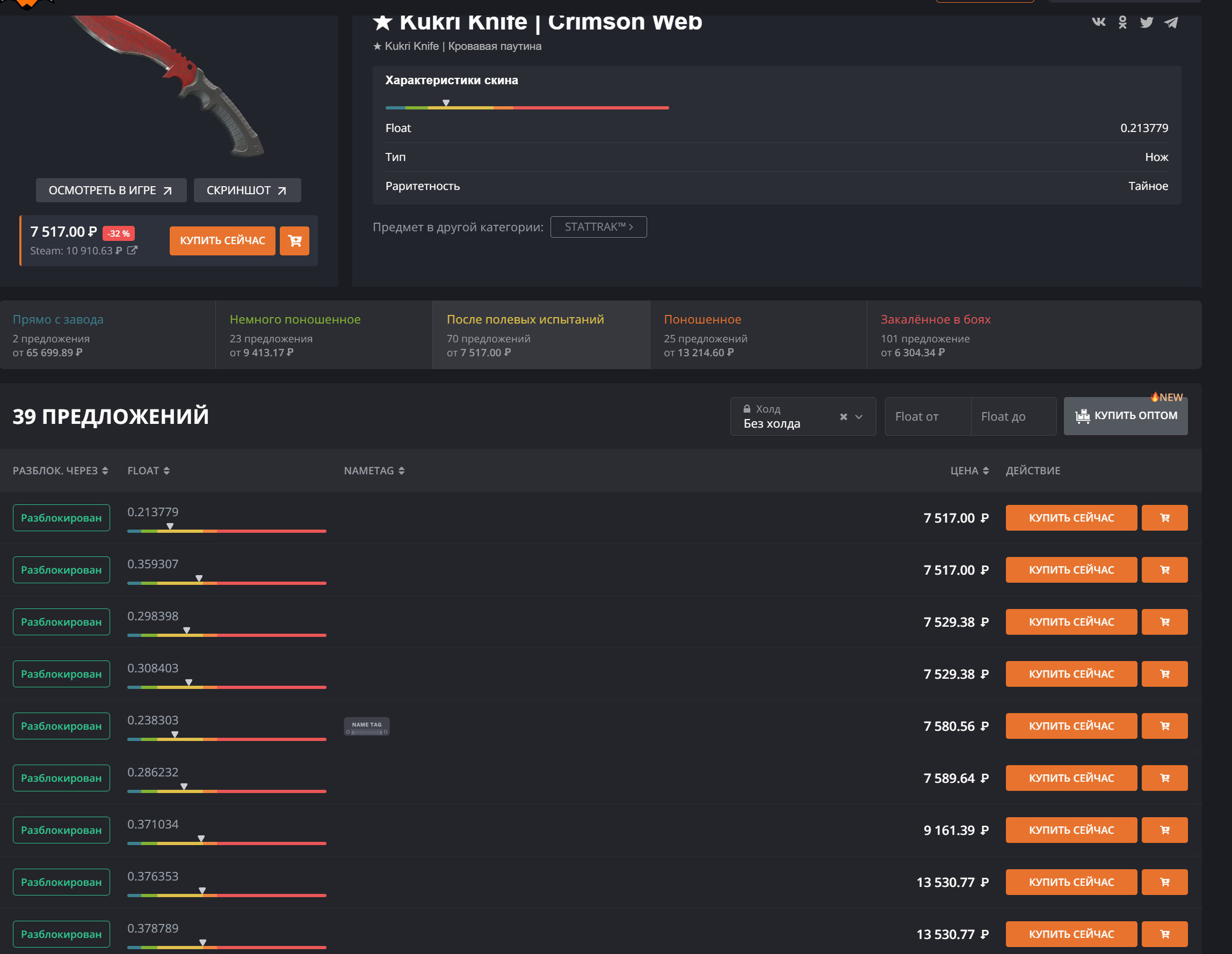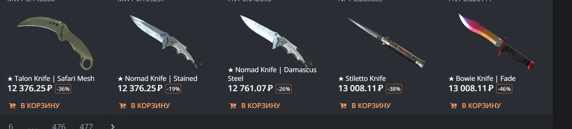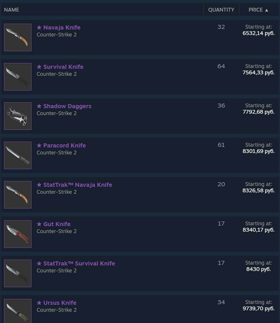 В четверг мне кажется все кроме первых ста человек хуйца пососут, щас куча людей ринулась на инспект сервера и рассматривают потенциальные покупки, слишком много желающий, чтобы ножи рухнули еще ниже