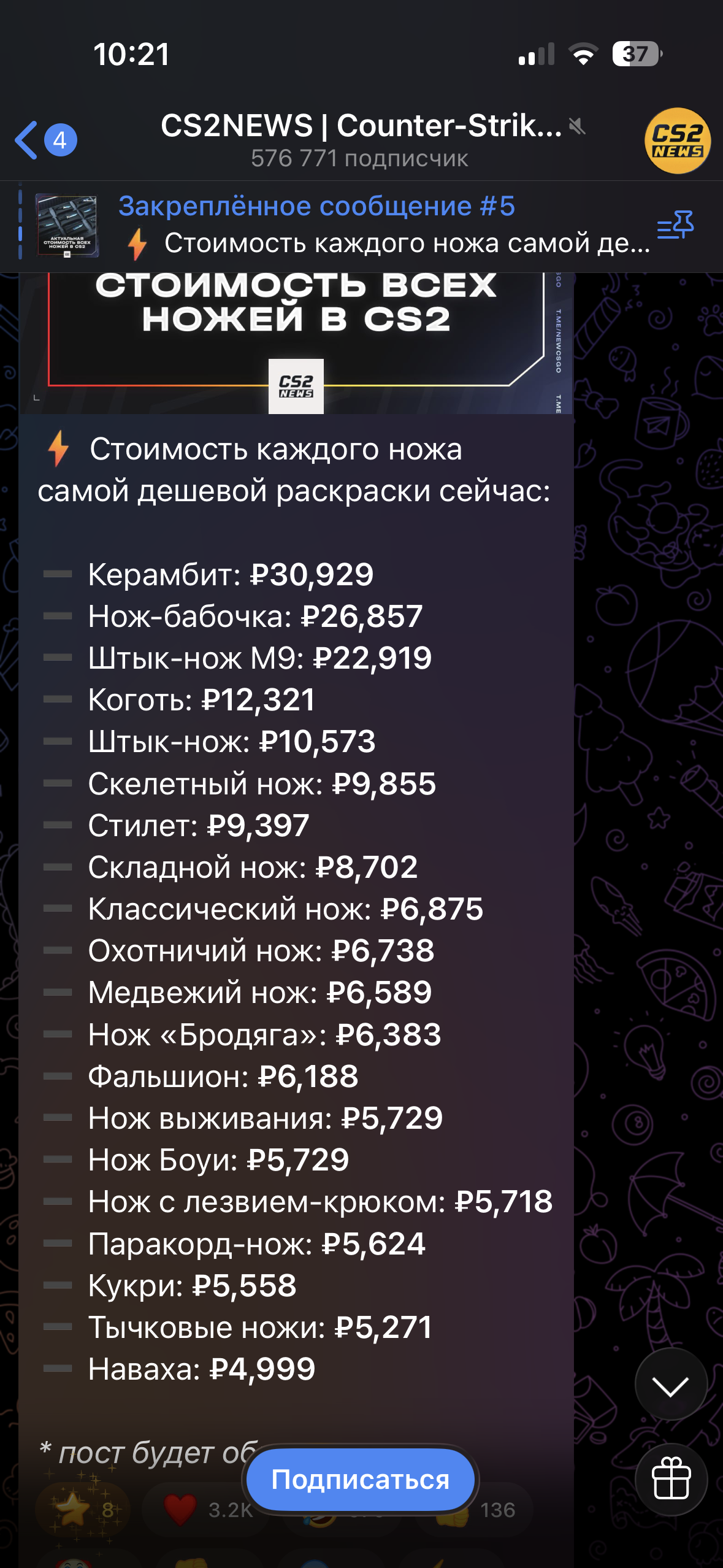 писю к носу прикинул что как инвестиция кс в любой момент все, скинами выведу щас тыщ 40 и нахуй, если будут дешевые ножи тогда куплю сет, если нет то в валике лучше флексану ножиком, нахуй тратить такие бабки на то что по шевелению пальца гейба просто может стать нетрейдабельнвм например. Адекватная цена любого ножа это долларов 30-40 , выше полная хуета, должна быть фикс цена