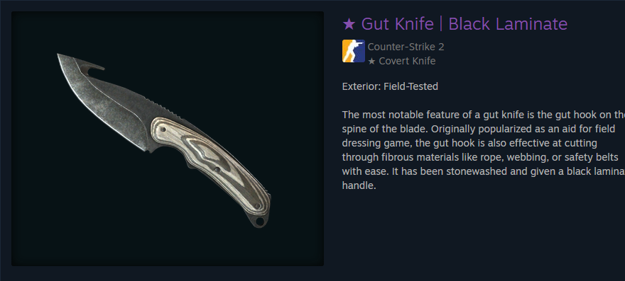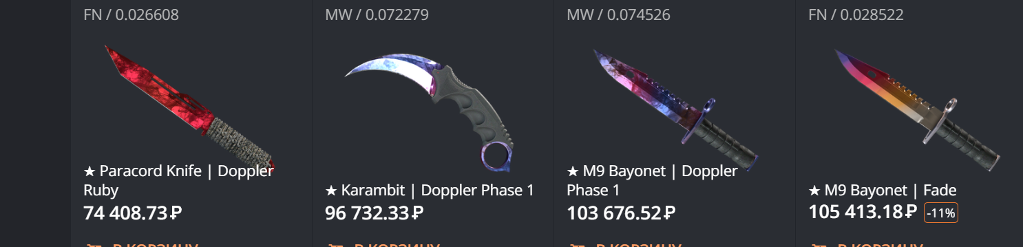 Я в последнее время в кс не играю и вроде как какие либо игры в стиме покупать не планирую. Последний свой ножик продал 14 июля этого года.