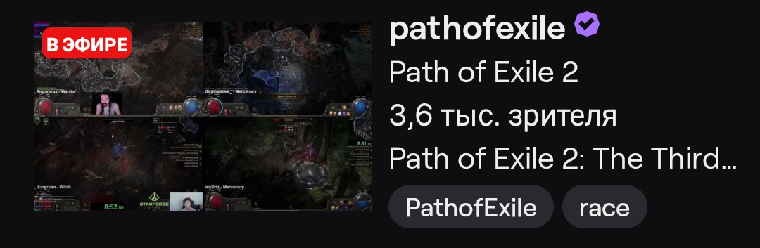 > Race Two of our Path of Exile 2: The Third Edict Race Event series starts in 30 minutes! If you'd like to participate, you can now create a character. With live commentary from > @ZiggyDStarcraft > and > @RaizQT > , head on over to our Twitch channel:https://www.twitch.tv/pathofexile