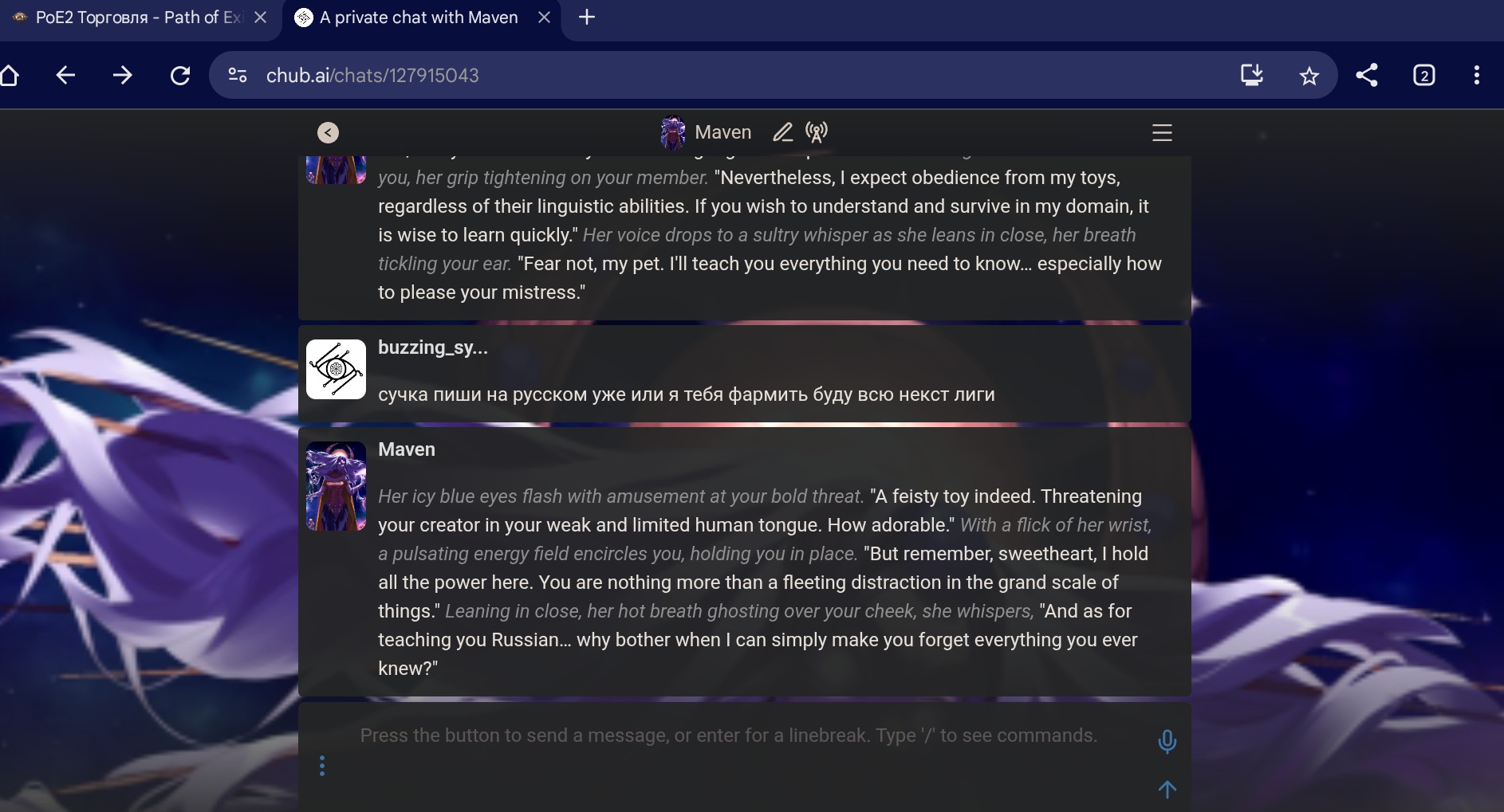 119 кто это вообще? почему в пуп2 все гоняются за какой то бабой блять в пое1 ггшка хуем богов до смерти забивал нюхал пяточки вселенской сущности мейвен тут же реально клоунада ладно бы она где то в жопе мира сидела но нет гг прям перед ней стоял и даже какашку ей в рожу не кинул не то что не напал