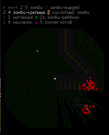 >>50319552 Скорость - это сколько поинтов действия ты получаешь за один ход(зависит от того сколько ты потратил поинтов на действия в предыдущих ход). Цена движения - это скорость+модификаторы(зависит от многих вещей, тип движения, скованность ног, боль, мораль и все такое) >>50319562 У разных локаций, и даже домов, свой набор спавна зомби, например возле оружейного будут более сильные зомби, но это не всегда зависит от сложности лок, возле мясного магаза будут сплошные зомби жирдяи и собаки. У тебя на пикриле обычные не эволюционировавшие зомби, кста.
