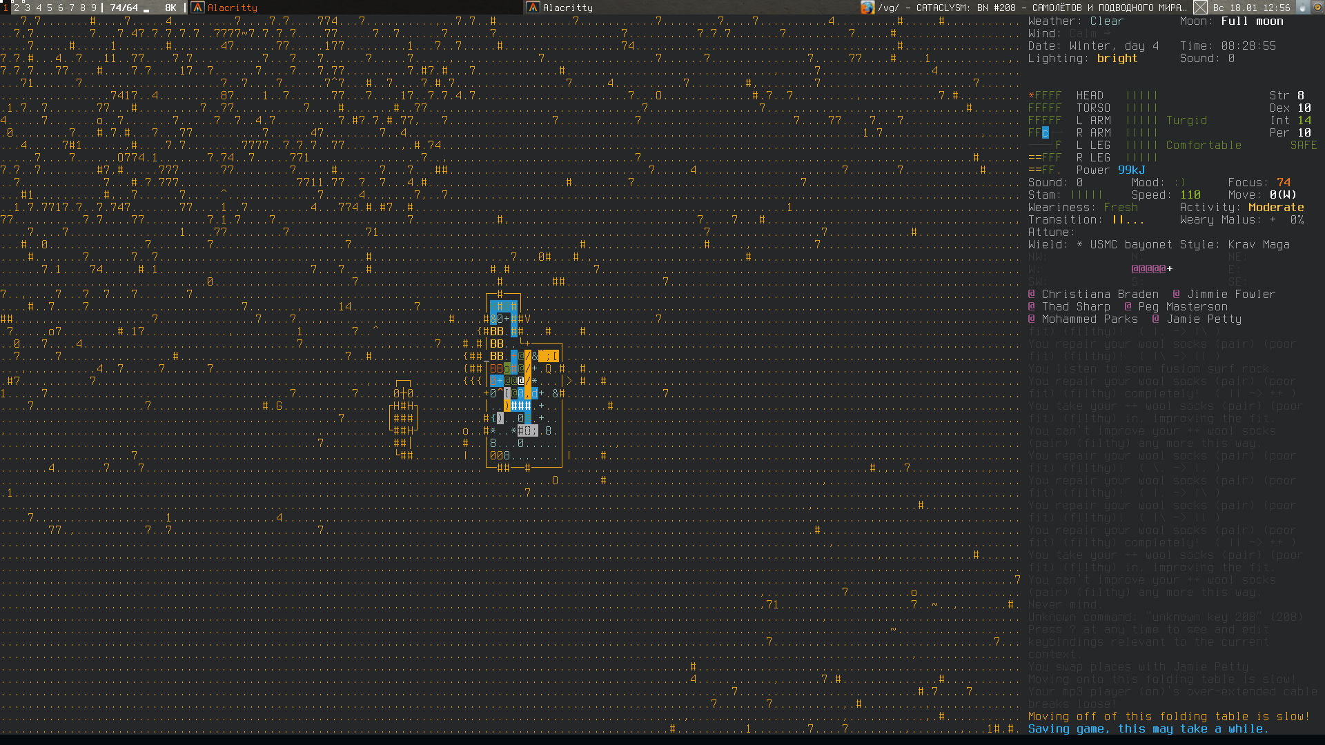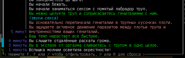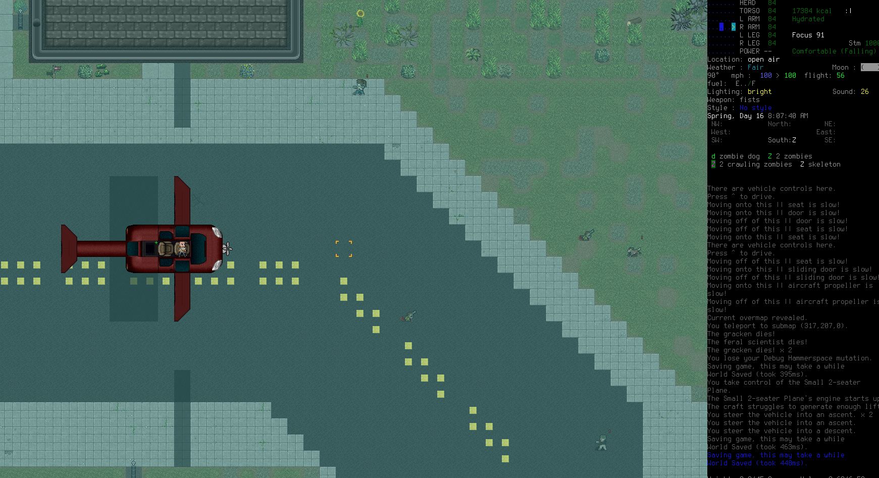>>50321607 Короче всё так и есть. Сейчас лично затестил. Зомбаки действительно прыгают обычный зомбак просто по диагонали тайл тупо пропустил. Но делает он это не всегда а примерно раз в 15-20 ходов, может меньше. Он в любом случае медленнее тебя и от него можно уйти просто пешком. Одежда на ногах и обувь даёт дебаф к скорости передвижения но если там не что-то сверх сковывающие или тяжёлое это терпимо. В твоем случае кросовки дают +1 и джинсы +2. В окне персонажа можешь нажимать tab и стрелочки для подробностей.
