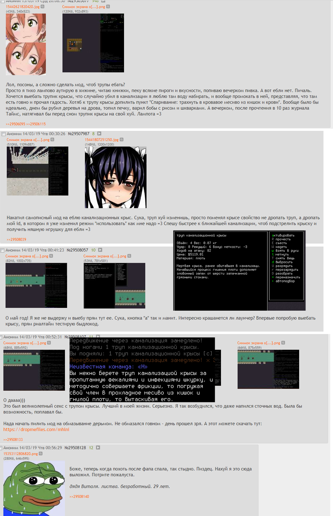 >>50350433 >ковыряли код До сих пор пилят. Плюс какие-то форки в которые играют полтора анона, один разраб уходит другой появляется. Есть буквально хорошие рогалики, но о них почти никому не известно, кроме нишевых каких-то сообществ. Sil-Morë - форк Sil, одного из фановых кофебрейк рогаликов в олдскульном стиле, автор недавно прикрутил стим дек. Да для кого вообще? Та же история с каким-нибудь Brogue и его форками, там до сих пор проводят еженедельные соревнования по прохождению определенных сидов, хотя казалось бы нах оно нужно в 2025. Infra Arcana - очень тактикульный и атмосферный рогалик, лучше 95% параши из стима из раздела "рогалики", все еще живой, потому что как сказал автор - хочу сделать рогалик в который мне будет интересно играть самому. И много о нем вообще знают? Elona+ - Аутичный мутант Адома в японском стиле, на удивление удачный. Оно все еще живо и автор регулярно допиливает реально новые механики. А потом в инглиш комьюнити, декомпилируют экзешник каждой версии в псевдокод(потому что исходников у них нет, а японцы не умеют в гитхаб) и вносят кучу своих изменений+перевод с японского. А потом собирают обратно, и так год за годом. Это просто безумие, о котором мало кто знает вообще. Тут весь вопрос в энтузиазме в общем-то.