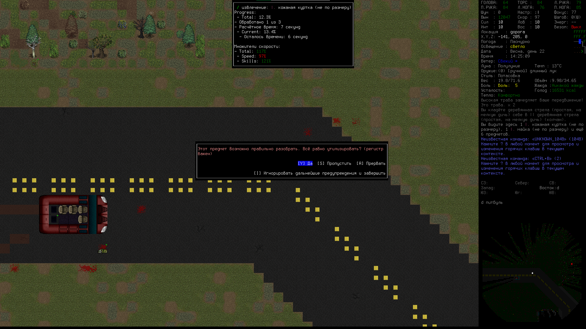 Короче я не, я выкатываюсь, тут ещё и простые зомби постоянно прыгают на 2 тайла игнорируя кусты столы и прочее, такое я не хочу играть. Выживаемость тут выше конечно, с десятками повреждений я хожу пержу, но такие же минусы только в другом.