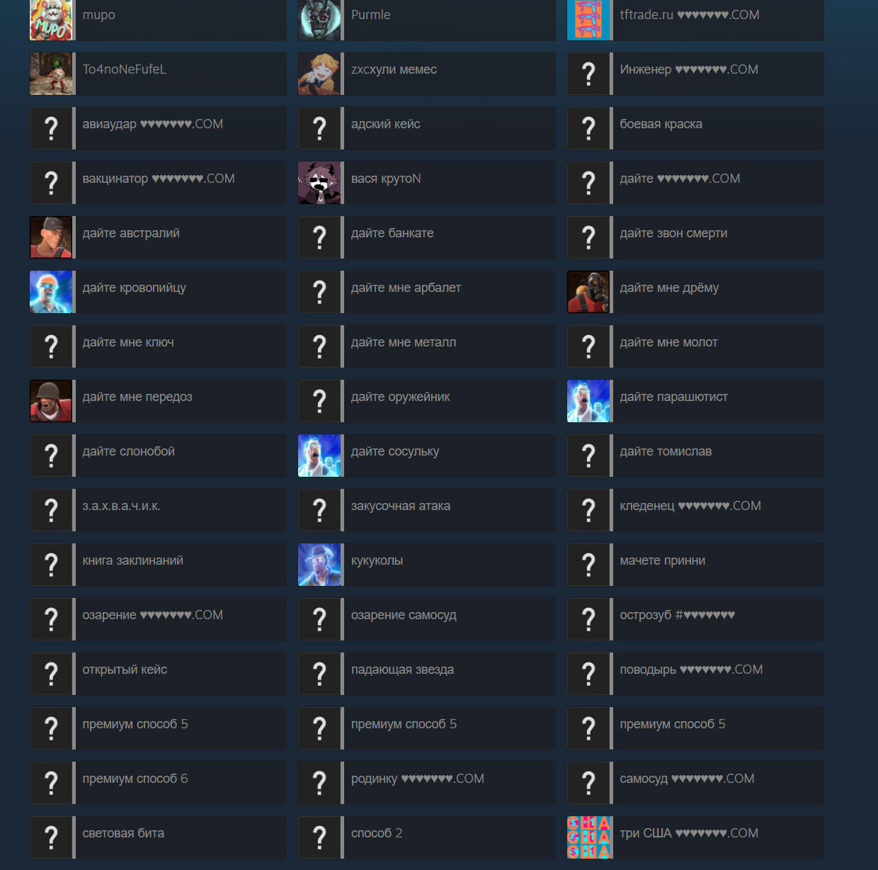 раффлы, трейд — https://scrap.tf , https://backpack.tf , https://tf2mart.net/
