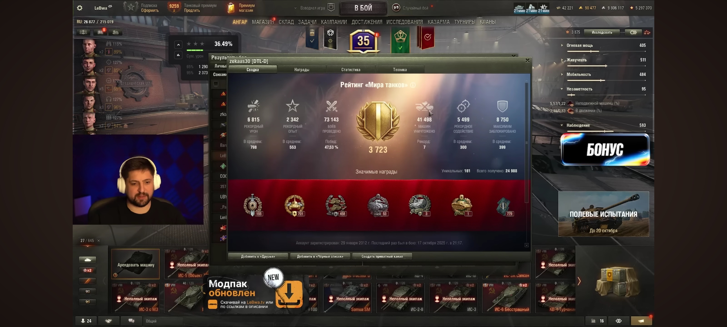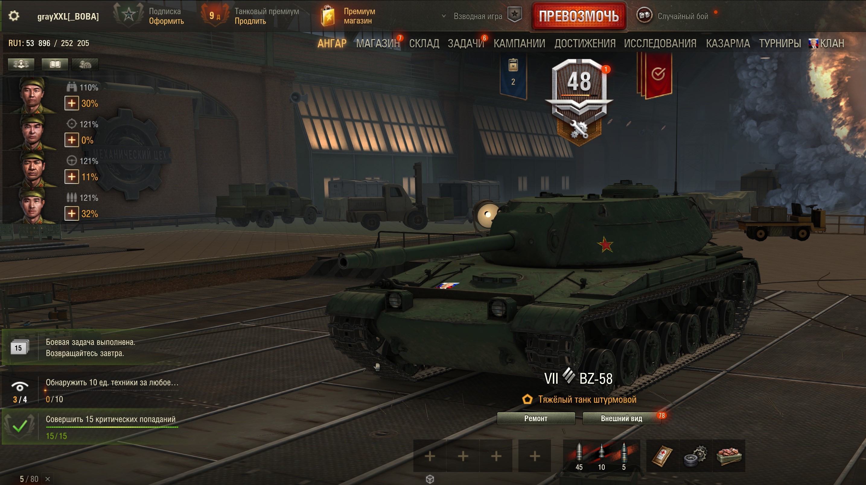 Поясняю додикам , которые говорят , что танк дерьмо и скулят как девочки) Плюсы :идеальная стаба, броня есть, особенно в бортах , что-то да отбивает , если встать от борта то его хер пробьешь ,1600 хп, -8увн, хороший обзор как для тяжа, халявный , очень быстрый залп 2 сек , дозарядка, 360 урон с 2 выстрелов, основной снаряд бб 216 более чем хватает, тем более с новым балансом где ты играешь в основном с 8 ми , так ещё и стоимость его составляет копейки 530 серы , то есть 720 урона за 1060 серы , поэтому для фарма танк шикарный , далее у танка турбины , 6 шт тебе хватит на два боя , тараном сносить только в путь , стрелять залпом ахмренно у тебя всегда летят снаряды в цель , при том что оба , броня какая никакая есть , лучше ли этот танк об 703 ? Конечно же ! Ааа ну вам постоять об башни надо и ничего не попробовать с подколом в 221 , с ценой в 1180 серы , что в 2 раза дороже чем этот , вопрос же опять фарма . Крч отыграл на нём 103 боя средуха 2800 , чисто на бб Фарм 7 300 000 без резервов, ну и ещё раз повторюсь танк халявный ! Че ещё надо ))