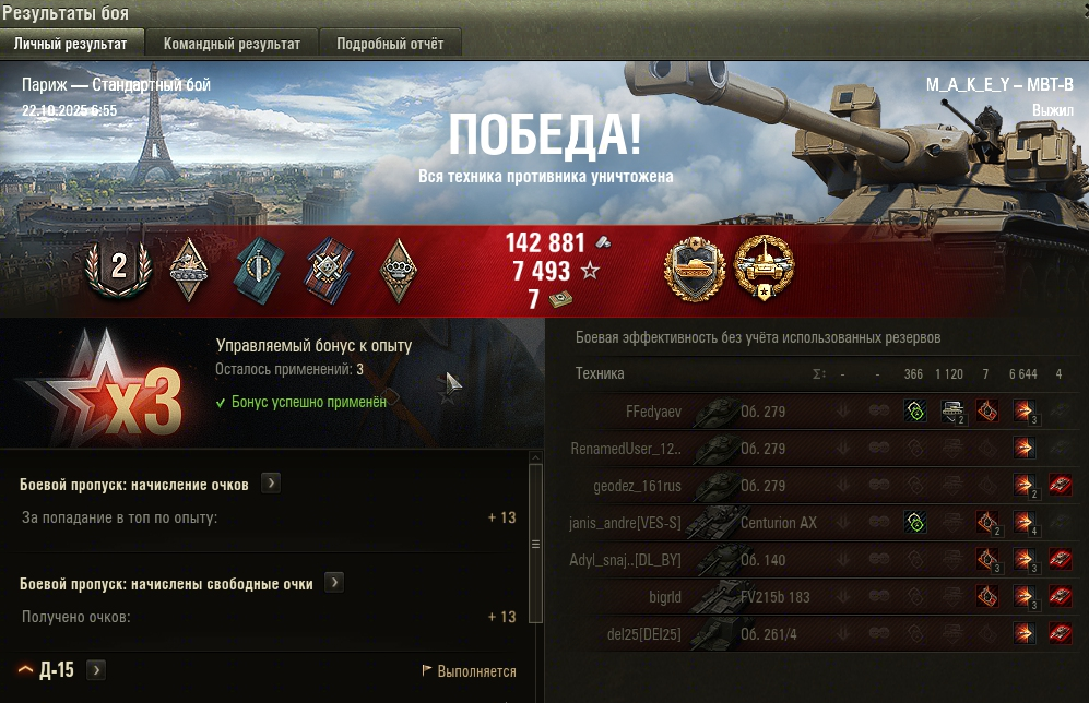 >>50349614 > мотивируя меня не заходить в игру как минимум в период июль-сентябрь Сеймыч, я в принципе так и хотел поступить, в мае еще дропнул игру, но сорвался когда анонсировали ап моего любимого Хэвика плюс ДР МТ плюс патч Разворот и вот я опять в игре. Хотя в 23 я себе так Кировца залутал. Но, с другой стороны, хотя бы ЛБЗ на 279 выполнил, на апнутом то Хэви.