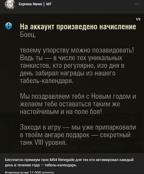 Вот я замечу что они опять дали танк тем кто не играет, мотивируя меня не заходить в игру как минимум в период июль-сентябрь в след году чтобы получить награду 8 лвл танк прожету. Не играешь - дают танк. В чем я неправ?