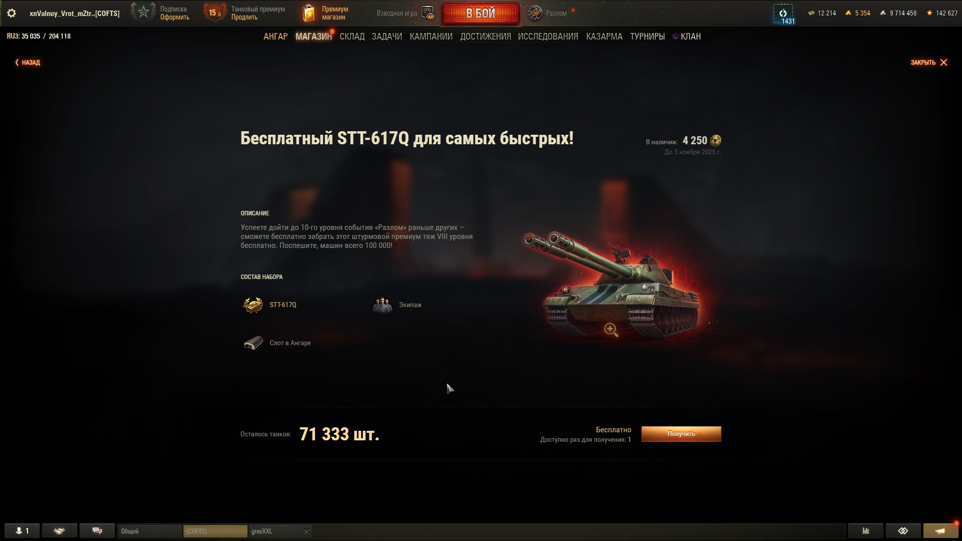 А что случилось? В честь чего такая щедрость? Прога это очень жирно. Есть все кроме Проги, заберу ее. Но разрабы тупые. Я свалил на ВГ не потому, что у меня нет прем танка, а потому что контента нет. Н и Х у Я нет контента. Новый ивент глянул, это кал ебаный и даже ради той стремной двустволки его нет смысла катать.