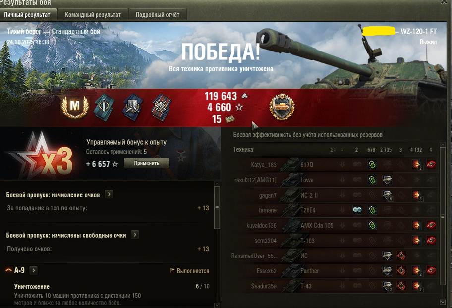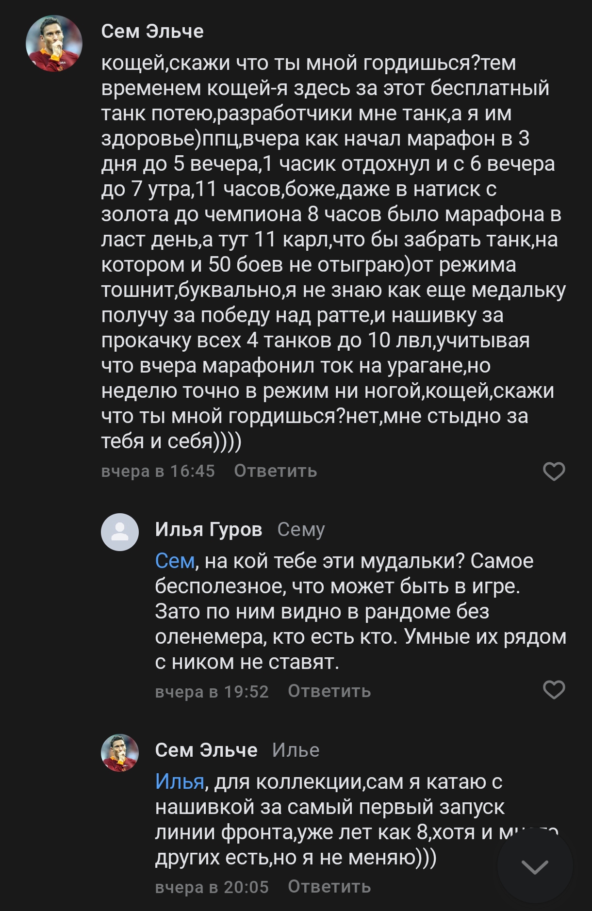 Поиграл на двусвольном китайце, как же он страдает. Пытаюсь поймать дзен, как же всё-таки на нем играть, но пока не поймал. Танк не едет, не попадает, пробитие слабое. Как обычно в этой игре: взял новый танк и ломай голову как довести его до ума. Хуже Феникса. Единственное объяснение зачем я его взял это хайп и вызов самому себе: смогу ли я получить приз. Смог. Лучше бы я выспался.